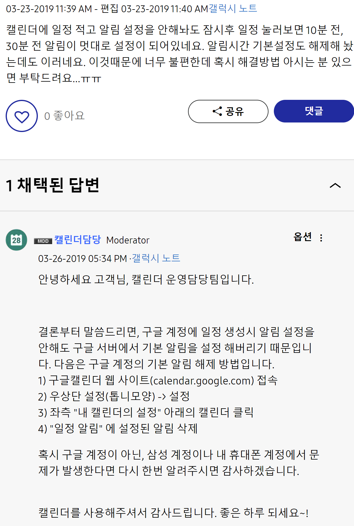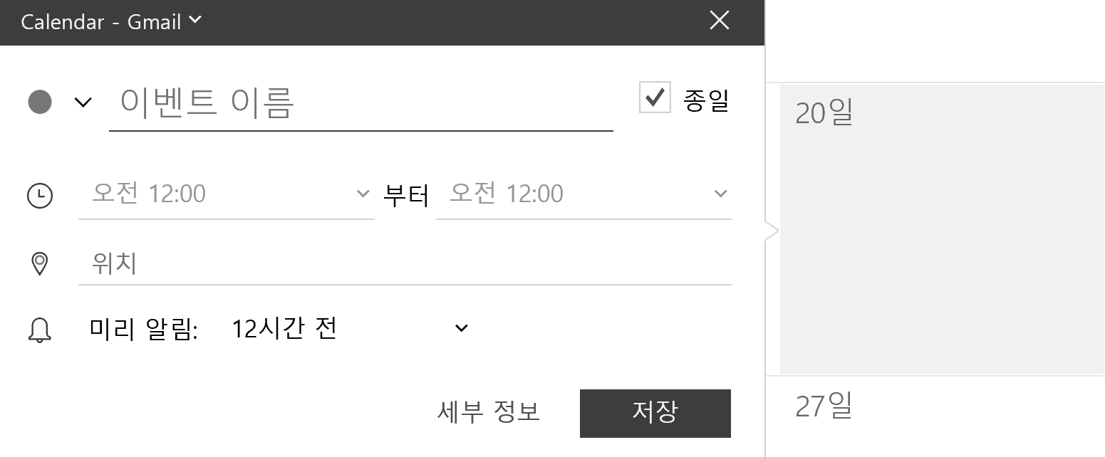 * 하나 슬픈건 캘린더 앱의 "미리 알림"을 사용안함으로 설정하고 싶었던 건데, 저건 도대체 어디서 하는건지 모르겠네요.