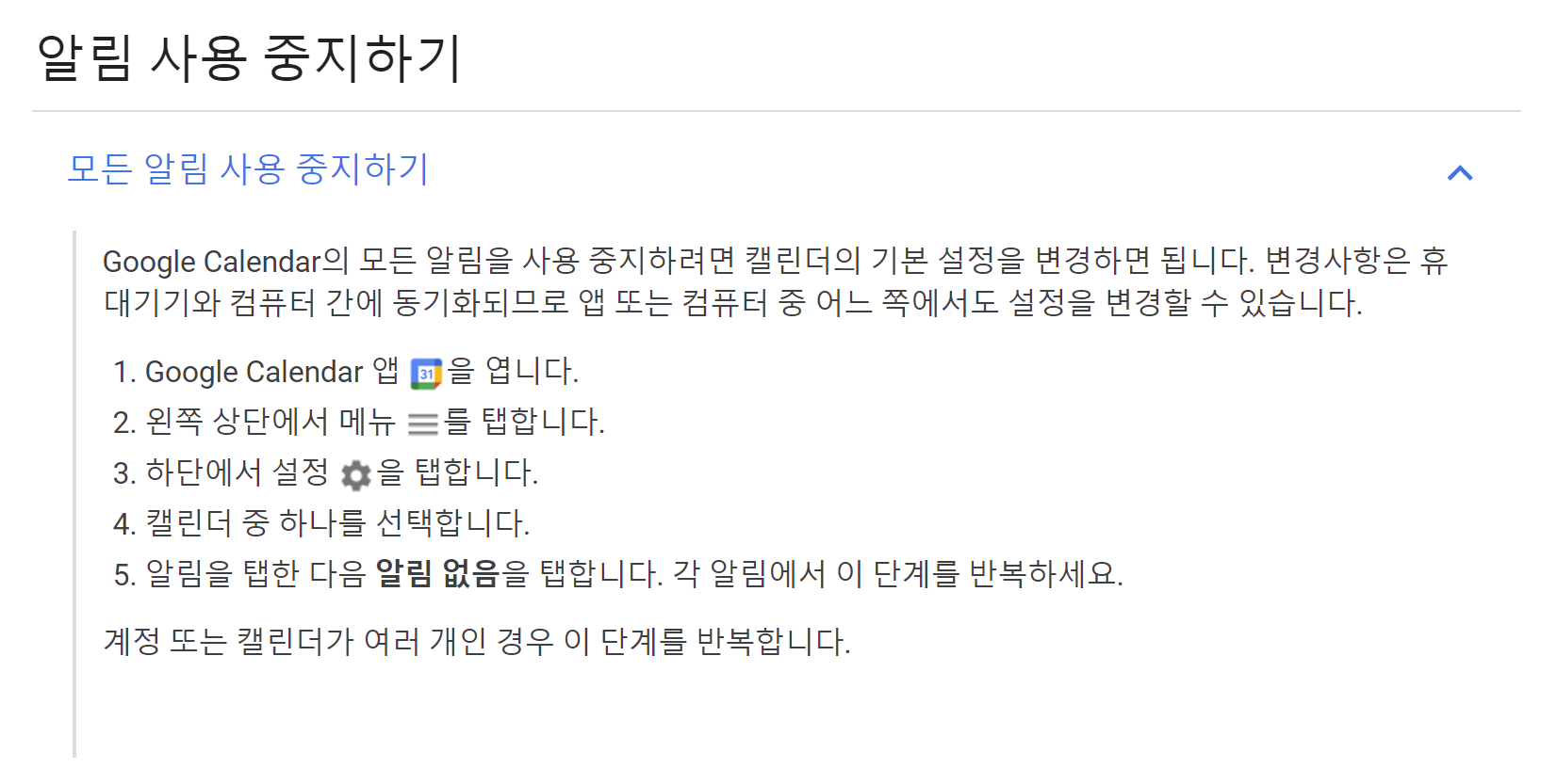 4. 특정 캘린더 알림 끄기