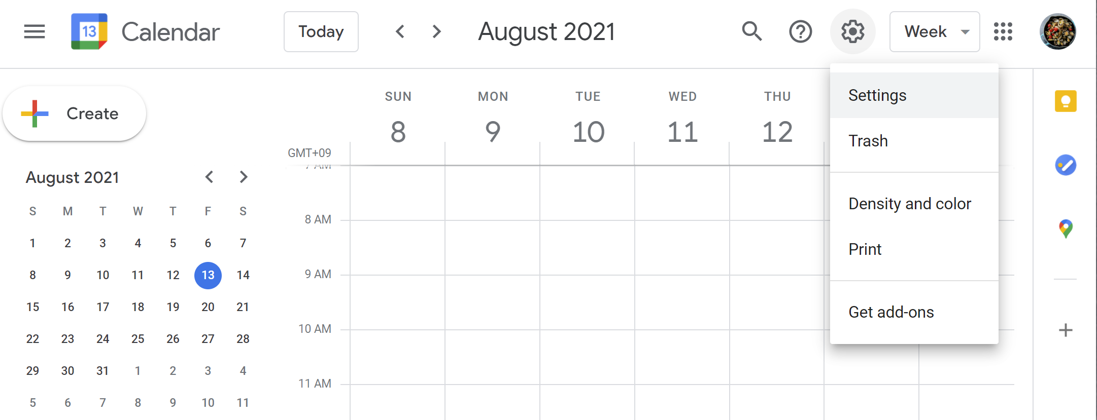 2. 캘린더 설정 클릭